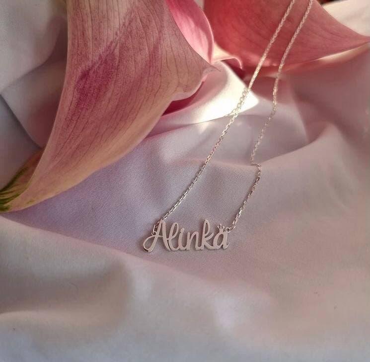 Срібний ланцюжок з ім'ям Alinka, іменний кулон
